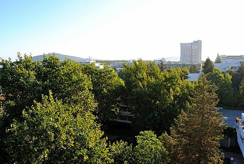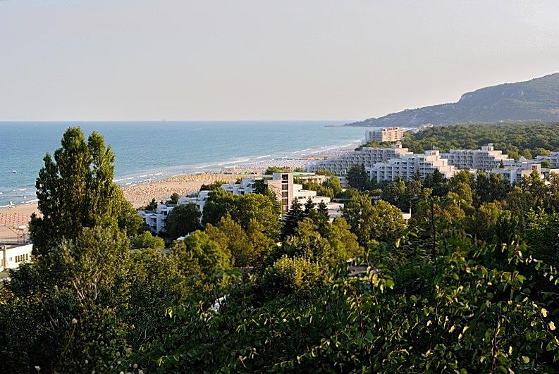 Albena is a cozy family Black Sea resort in the north-east of Bulgaria. Here's what the place looks like when seen from above - from the top of one of high hotels and also from a height above the beach, as Albena is, so to say, a two-storeyed resort.